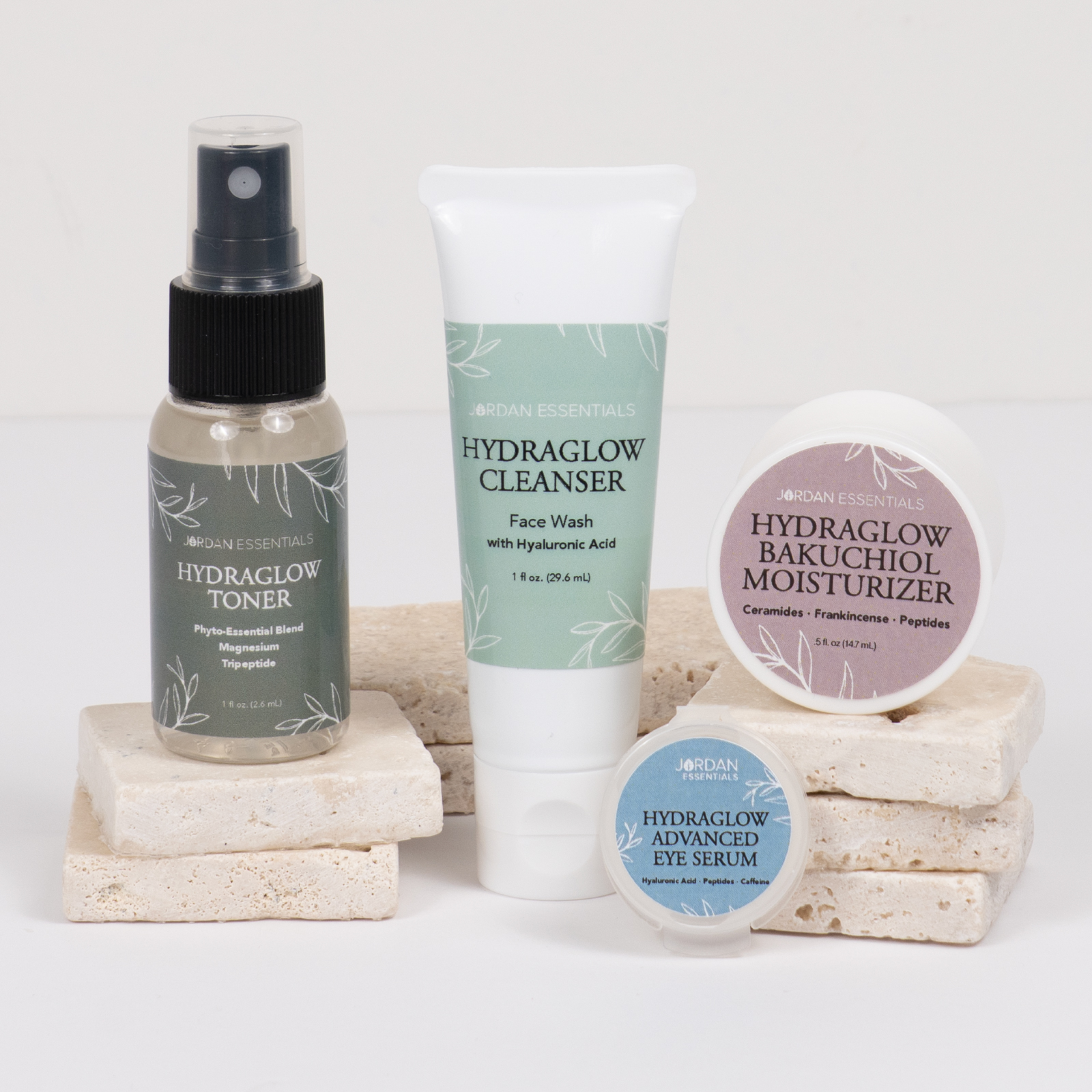 Designed to visible support hydration, smoothness, and glow the HydraGlow Discovery Set features a curated lineup of skin-loving formulas in perfect sizes.